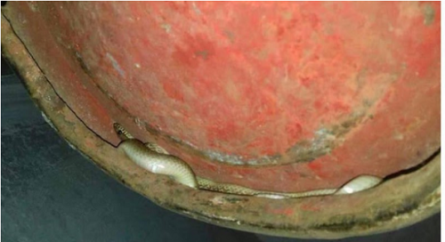 Twitter user Ladipo has raised alarm after finding a life threatening snake underneath his Gas cylinder, But it seems to