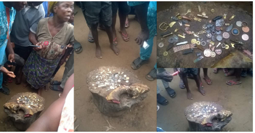 Residents of Ajere, Ekori, Cross River State were shocked to discover some items inside the intestine of a goat.