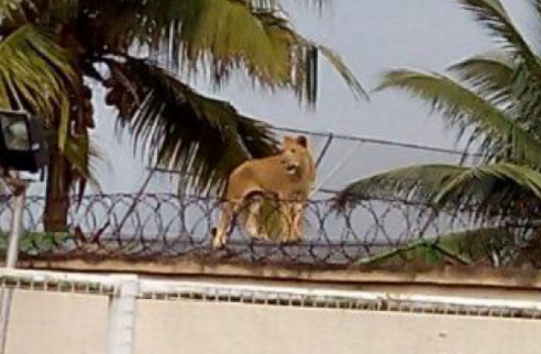 A few people have sent me emails claiming they spotted a lion on a fence of a pasta factory in