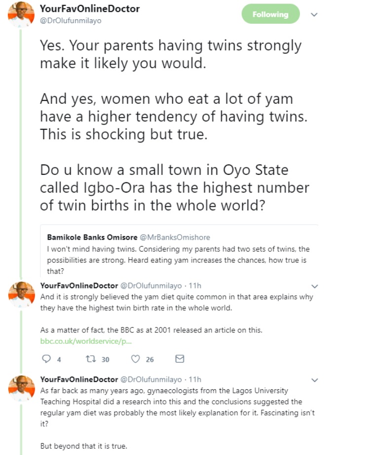 wow am hearing this for the first time, is time for my wife to be eating plenty yam bcos i love twins